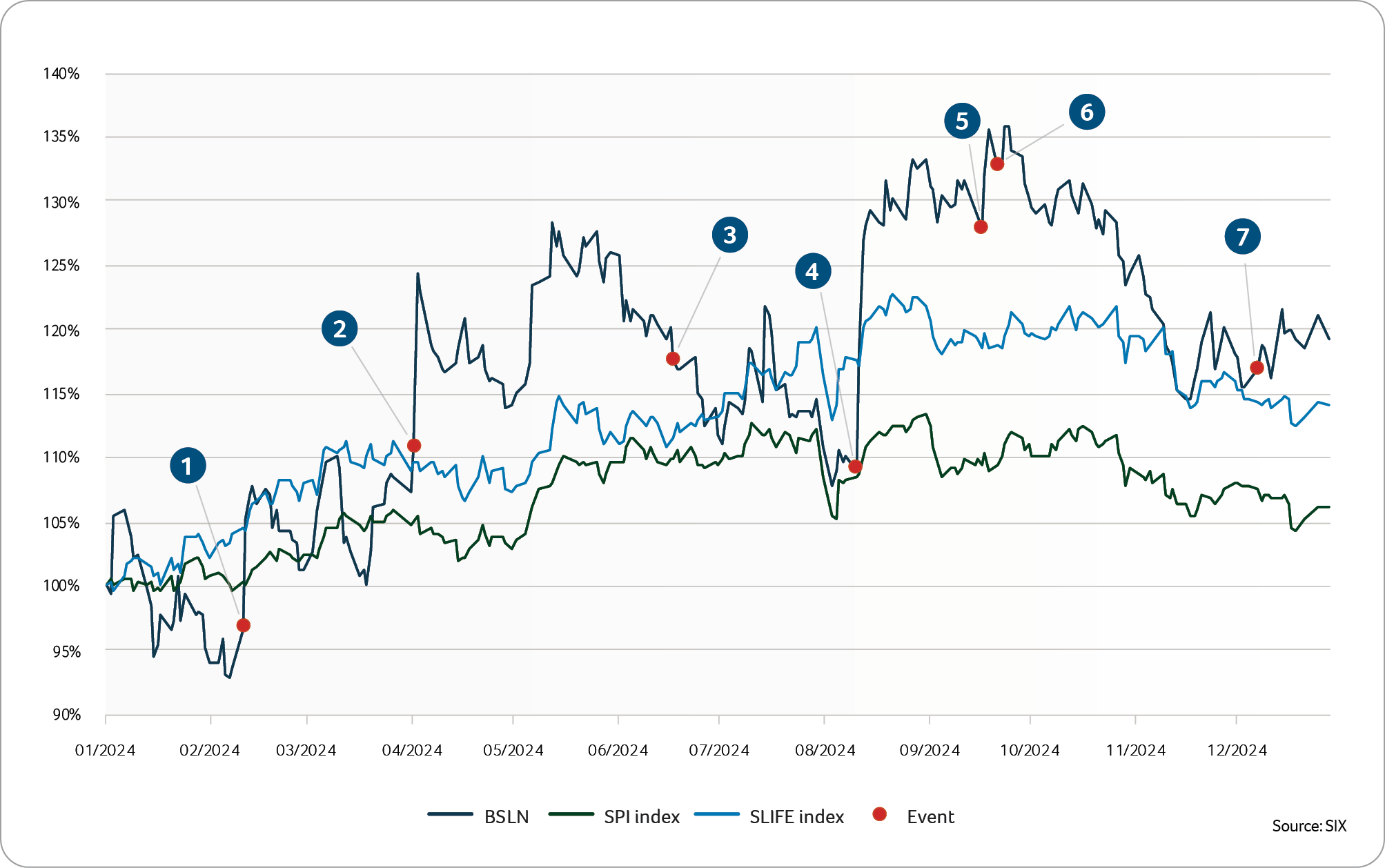 ➍ Basilea reported strong half-year figures on August 13, 2024, and raised its forecast. Total revenue of CHF 196 million (+20%) and a net profit of CHF 42 million were projected for the full year.