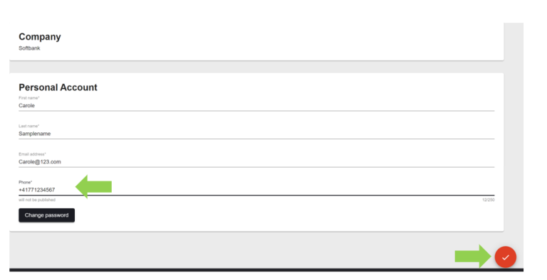 Provide a phone number (will not be shared) and save your entry by ticking it off on the bottom right.